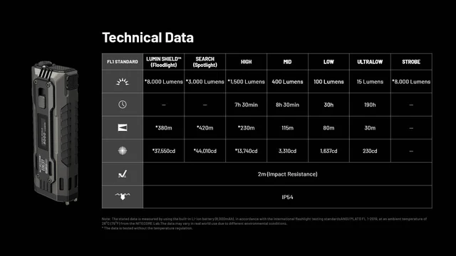 Charging the EDC37 is fast and convenient with its built-in USB-C port, and the OLED screen provides real-time battery level updates. On a full charge, the EDC37 can run for up to 190 hours on its lowest setting and fully recharges in just 2 hours. For added safety, it includes a Lockout switch to prevent accidental activation. Compact at just 4.25 inches long and weighing only 7.02 ounces, the EDC37 easily fits in your pocket. With an IP54 water-repellent rating and 2-meter impact resistance, it’s built to perform reliably in tough environments.