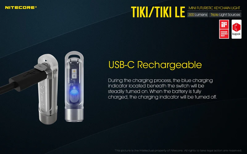 Nitecore TIKI 300 Lumen USB-C Rechargeable Keychain Flashlight