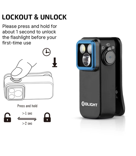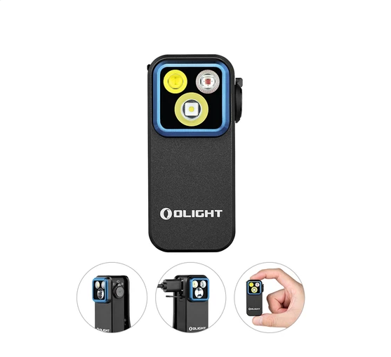 • Olight’s First Clip Light with 3 Lighting Solutions: Oclip Pro comes with 500lm white flood, 120-meter range spot, and 40/4lm red light, switching by rotating the side selector.